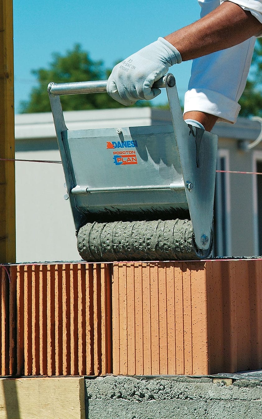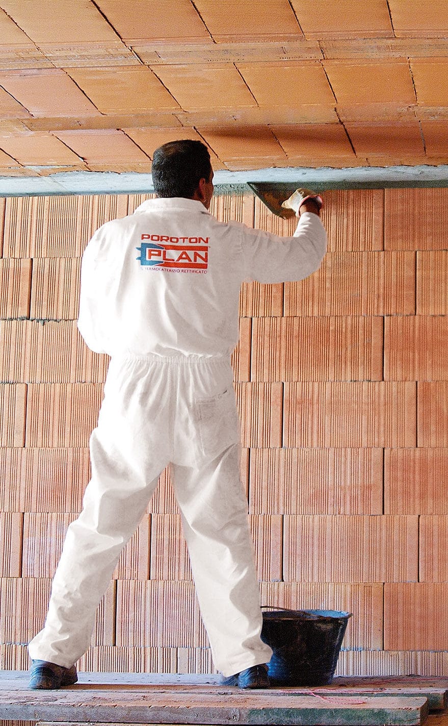 La muratura rettificata Poroton Plan si esegue, in generale, come una qualsiasi muratura in laterizio e non richiede manodopera specializzata; è necessario tuttavia che essa venga posta in opera “a regola d’arte” secondo le regole del buon costruire.